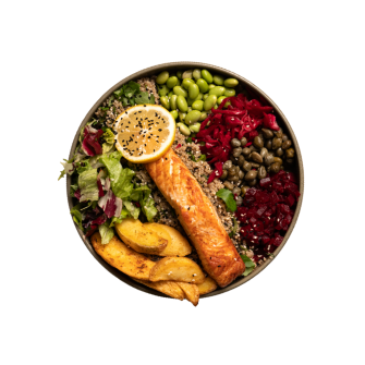 Rakula-Karışık Akdeniz, Bal Kabağı, Kinoa, Ay Çekirdeği, Feta Peynir, Soğan Turşusu, Kapari, Nohut