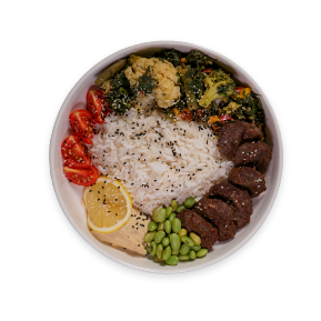 Basmati, Ispanak Sote, Fırın Patates, Bezelye, Biber, Domates, Salatalık, Susam, Tofu Izgara