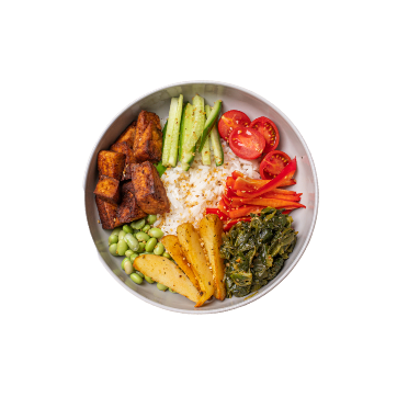 Basmati, Ispanak Sote, Fırın Patates, Bezelye, Biber, Domates, Salatalık, Susam, Tofu Izgara