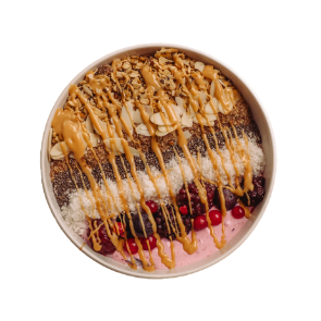 Strained Yogurt, Acai Powder, Granola, Honey, Peanut Butter, Berries, Chia Seeds, Flax Seeds, Shredded Coconut