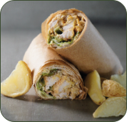 Lavash, Hummus, Grilled Chicken, Lettuce, Honey Mustard Sauce