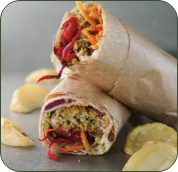 Lavash, Hummus, Lettuce, Falafel, Carrot, Red Cabbage, Tahini Sauce