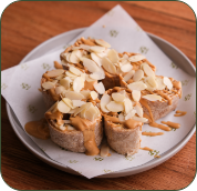 Lavash, Peanut Butter, Chia Seeds, Banana, Sliced Almonds